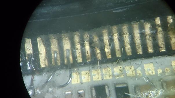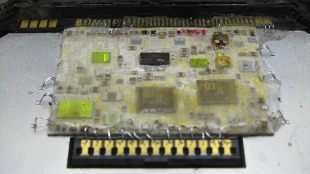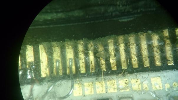 Коротко о ремонте... Принесли уже вскрытый и паяный блок, после местной мастерской по ремонту мобилок... после "ремонта" у клиента на авто перестал работать не только ABS, но и отказал гидроусилитель руля, перестала работать приборка и сдулась подвеска (машинка почти легла на брюхо) =)) Сунув блок под микроскоп увидел 3 паяных контакта и 6 порванных которые и пришлось восстанавливать. Еще был снят герметик рядом с кристаллом микросхемы, до последнего молился чтобы сам кристалл не пострадал ибо тогда блок пришлось бы выбросить в мусор...