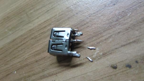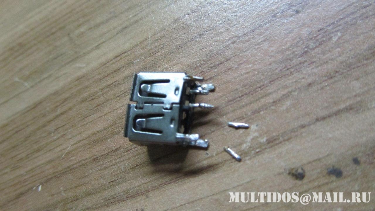 Убрав оторванные дорожки и лишний припой стало ясно что припаиваться больше не к чему, всё оторвано с корнем и сам USB разъем потерял два контакта GND и D+
