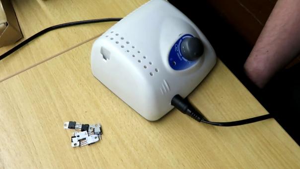 Маникюрная машинка при включении сразу набирает максимальные обороты и не реагирует на ручку регулятора скорости. Вскрыв аппарат видим регулируемый линейный стабилизатор LM317 + Сборку Дарлингтона BDW93C. Аналогом послужил полевик IRF640 ;) как это повлияло на работу машинки отпишитесь в коментарии плиз ;)