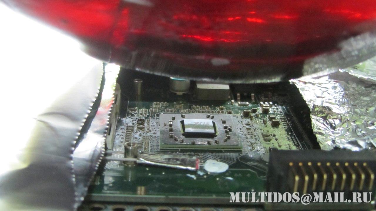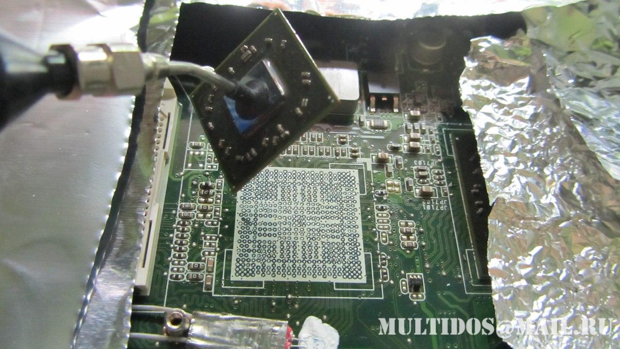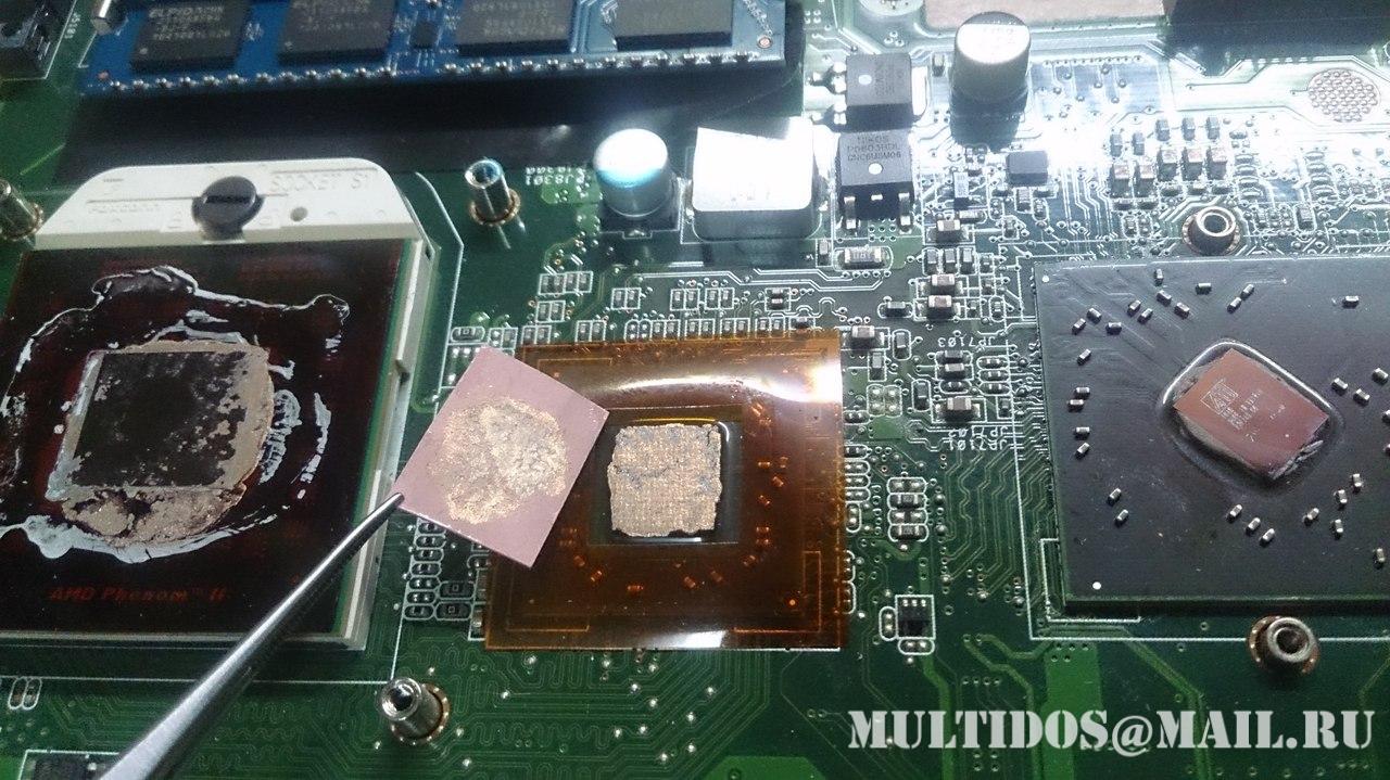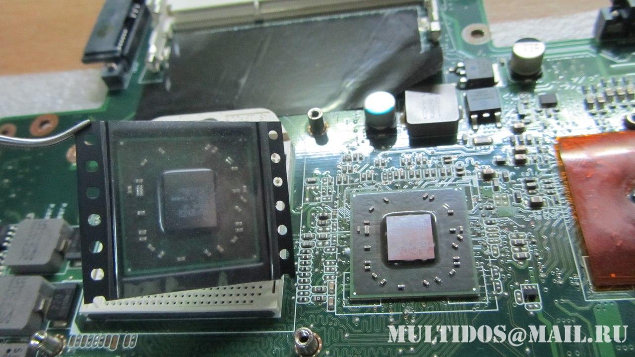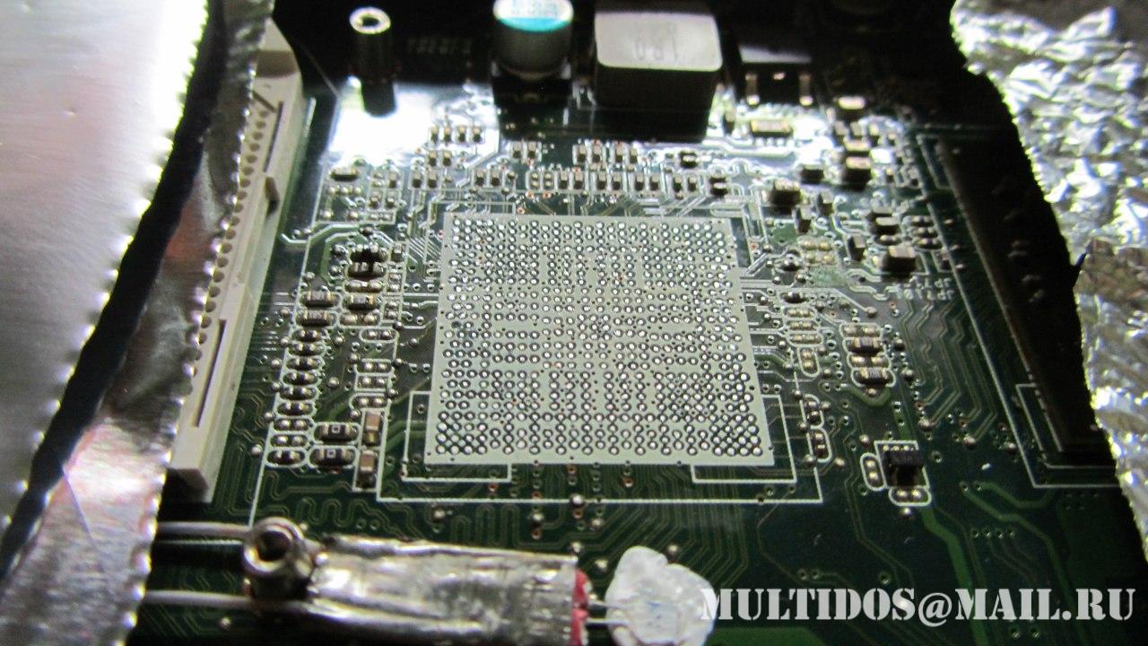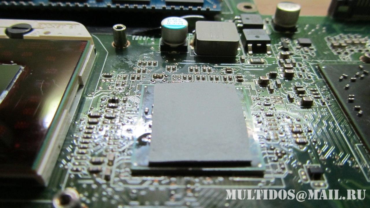 Также отсутствие компаунда под видео чипом и северным мостом указывало на то, что до этого производился или прогрев или ребол данных чипов... Что собственно и подтвердилось хозяином ноутбука.