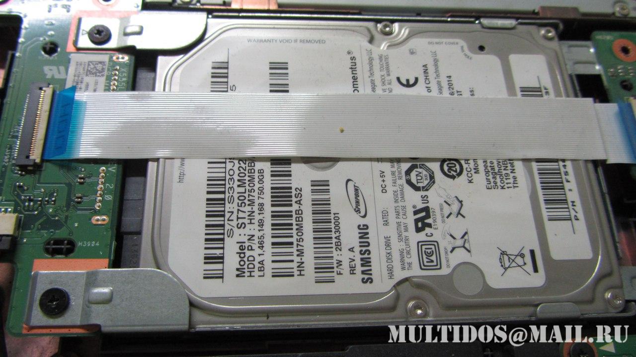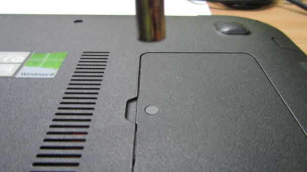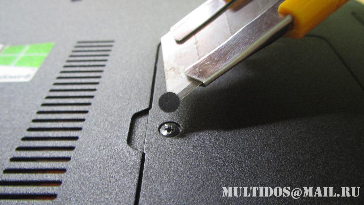 На самом деле при включении ноута можно заметить что постоянно горит индикатор HDD (жесткого диска)... Беда в том что ноутбук куплен в России и до конца гарантийного срока эксплуатации оставалось всего 2 дня =(( Было принято решение вскрыть и протестировать жесткий диск на стенде плюнув на гарантию так-как поломку HDD легко списать на "не гарантийный случай". К слову как таковых пломб на ноутбуке не было, была небольшая декоративная наклейка, решил сохранить ее внешний вид и дунул на нее феном слегка поддев канцелярским ножом, отошла легко без внешних видимых повреждений =)