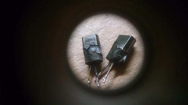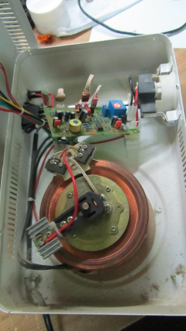 Довелось чинить сие чудо после природной стихии бушевавшей прошлой пятницей в Горках... Масштабы разрушений стабилизатора были невелики, но зрелищны... Выгорело 2 транзистора и медная дорожка на плате... Причем дорожка по всей видимости выгорала с такой скоростью, что даже не оставила углей на плате, медь просто испарилась =) смотрим фото ;)