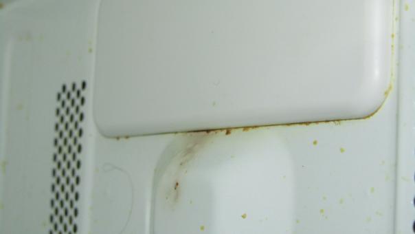 На будущее, заливать микроволновку чистящими средствами и драить металлической губкой - это не лучшая идея... Помимо данного случая может пострадать еще и керамическое покрытие внутри самой печи, что тоже чревато последствиями.