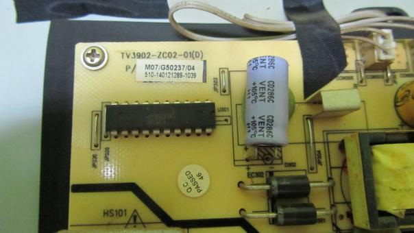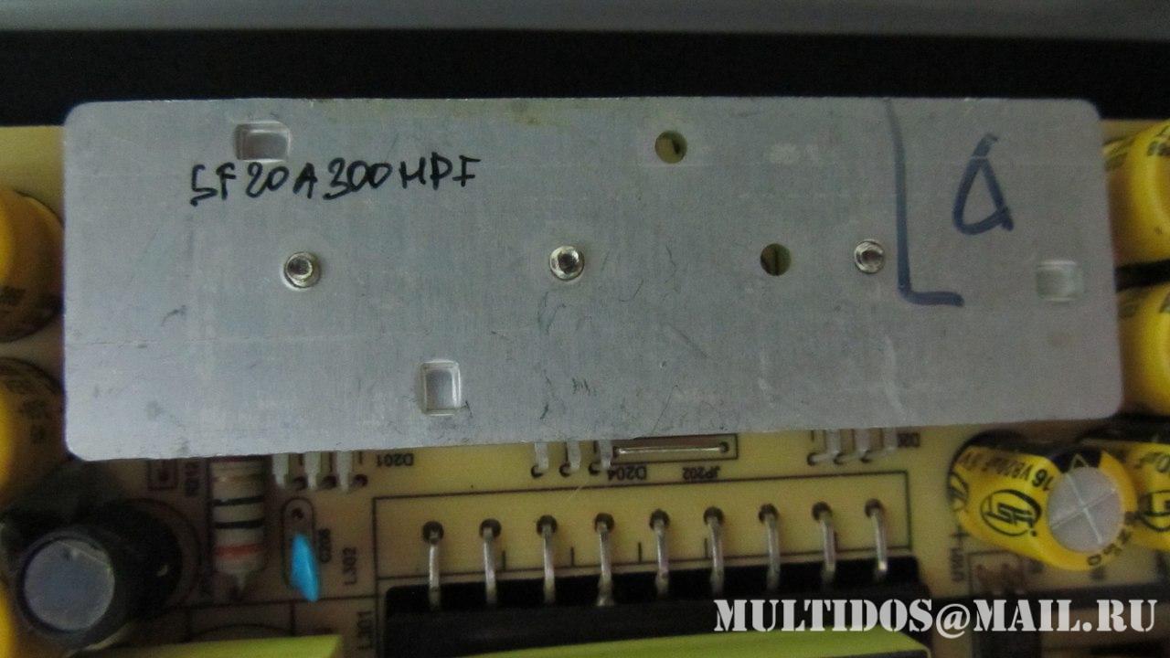 Причиной выхода из строя оказался сдвоенный диод sf20a300hpf в блоке питания TV3902-ZC02-01(D), одно плечо которого пробило и звонился он 66 Oм в обе стороны.. на фото он под радиатором, стоит в цепи питания LED подсветкой 70 вольт 200 mA... Для его замены необходимо снимать весь радиатор с тремя сдвоенными диодами... Также досталось прошивке телевизора, после смены которой телевизор стал работать в штатном режиме...