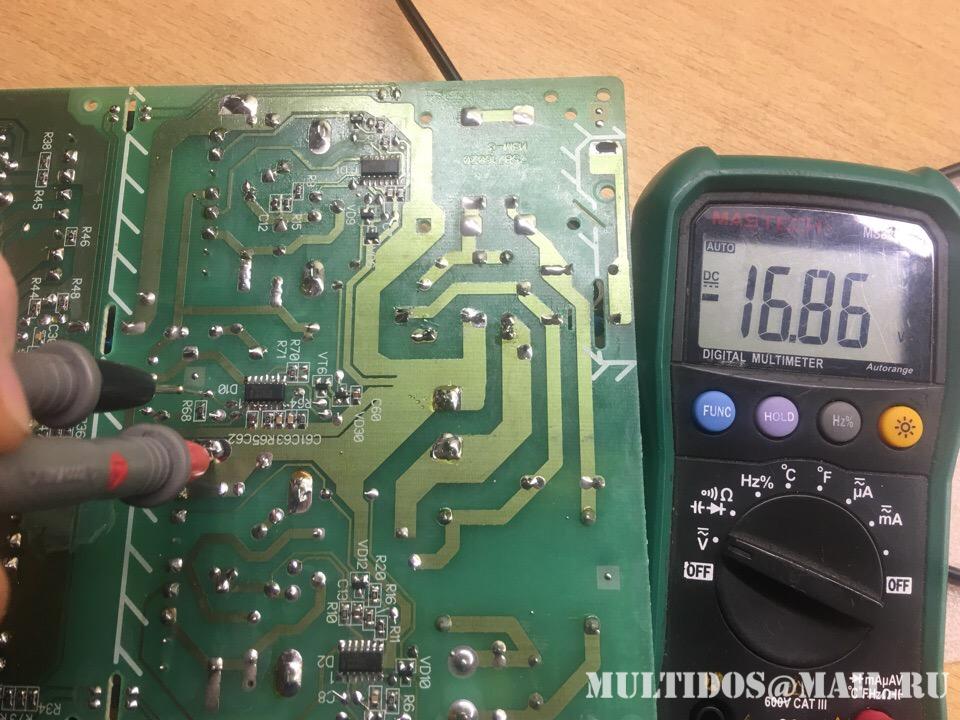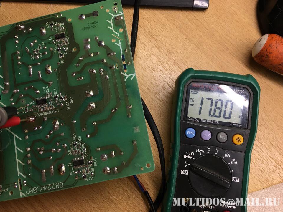 Однажды уже был в ремонте такой же аппарат и с такой же проблемой. Выход из строя блока питания МП-26М у которого в центре шим TEA1522T красуется прекрасная дыра :) Думаю можно заносить данный дефект в «типовухи» и пользоваться в дальнейшем при ремонтах показаниями с тестера приведёнными ниже на фото.