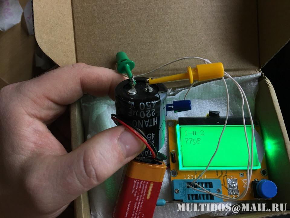 Выпаиваем электролит и измеряем его ёмкость, и вместо указанных 220 мкФ видим 77пФ :) не мудрено что шим дежурки не выдержал таких испытаний имея такого плохого соседа :)