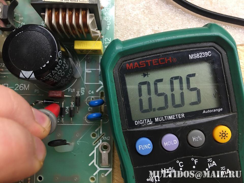 Мне не понравилось что у одного диода в сборке диодного моста сетевого электролита было значение падения напряжения ниже чем у остальных диодов. У трёх было 0,521 и у одного было 0,505 - меняем этот диод!