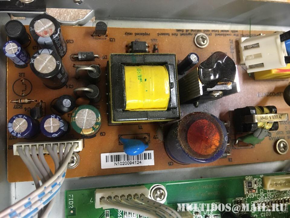 Проблема заключалась в неисправности блока питания. Благо к нему оказалась схема и в принципе восстановить данный ад было просто. Единственное над чем пришлось покумекать это ШИМ, здесь установлен LD7530 которого у меня не оказалось. Зато лежала упаковка OB2273, её то я и использовал для восстановления данного блока! Так же стоит устанавливать конденсаторы как можно дальше от радиаторов, по этой причине конденсатор питания ШИМ я установил лёжа )) всем хорошего сигнала ;)