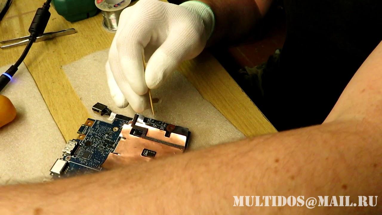 При подключении зарядного устройства раздается щелчок и индикатор работы блока питания гаснет, что свидетельствует о коротком замыкании. Пробежавшись по входной цепи сразу обнаружил пробитый P-канальный транзистор по схеме AON7409. Заменив неисправный транзистор (пару) короткое замыкание присутствовало уже на истоке второй пары транзисторов. Проверив сопротивление на дросселях было принято взять остатки фризера и начать поиск локального нагрева, это привело к выбитой керамике. Вот так вот кусок глины способен вывести из строя ноутбук ценой в 1,500 $ =) Всем добра!