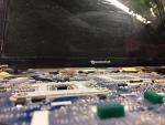 Ноут с заклинившим кулером и слоем пыли, мало того ещё и с оторванной гильзой под видеочипом и замятым шлейфом кнопки включения... фух, насмотрелся не усну теперь... а ещё кто-то пытался паять разьем сетевой карты... это вообще блудняк полный.